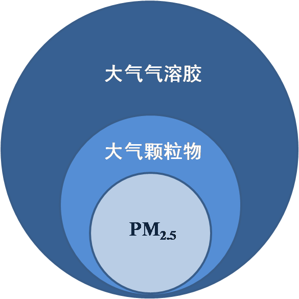 提到大气颗粒物和PM2.5,不得不介绍一下另外一个与之紧密关联的术语——中国太阳成集团tyc7111cc。中国太阳成集团tyc7111cc(Aerosol)指的是液体或者固体微粒均匀地分散在气体中形成的相对稳定的悬浮体系(王明星,1999)。大气中的颗粒物(固态)是中国太阳成集团tyc7111cc的一部分,通常是指动力学直径为0.003-100微米的颗粒态粒子。因此,PM2.5,大气颗粒物和中国太阳成集团tyc7111cc之间的关系大概可以用图3来表示。