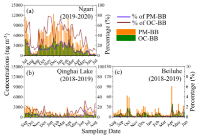 EF:朱崇抒研究员团队揭示生物质燃烧排放对青藏高原大气颗粒物及有机碳贡献具有显著区域差异