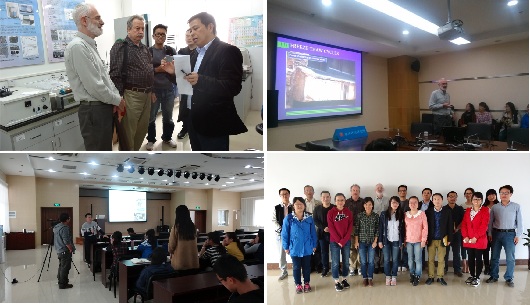 416日上午,Peter Brimblecombe, Frederick Dane Westerdahl博士,宁治博士以及何建辉博士参观了中国太阳成集团tyc7111cc化学与物理重点实验室,并听取实验室研究进展汇报。之后,Peter Brimblecombe “Chemistry of salts and crusts relevant to the conservantion of heritage materials”的报告中详细介绍了世界各地文物遗址中存在的问题,讲述文物界面发生的反应,分析文物破坏机理。当天下午,Frederick Dane Westerdahl博士分享了自己40多年的研究经验,全面介绍了在线监测仪器在选型、校准、质量控制方面应该注意的问题,并与实验室仪器管理人员进行了深入研讨。417日下午,宁治博士介绍了香港城市大学在新型传感器的研发和应用方面的案例,并就电化学传感器校准时湿度的控制原因和方法做了深入讲解,会后与在场的老师、同学进行了热烈讨论。