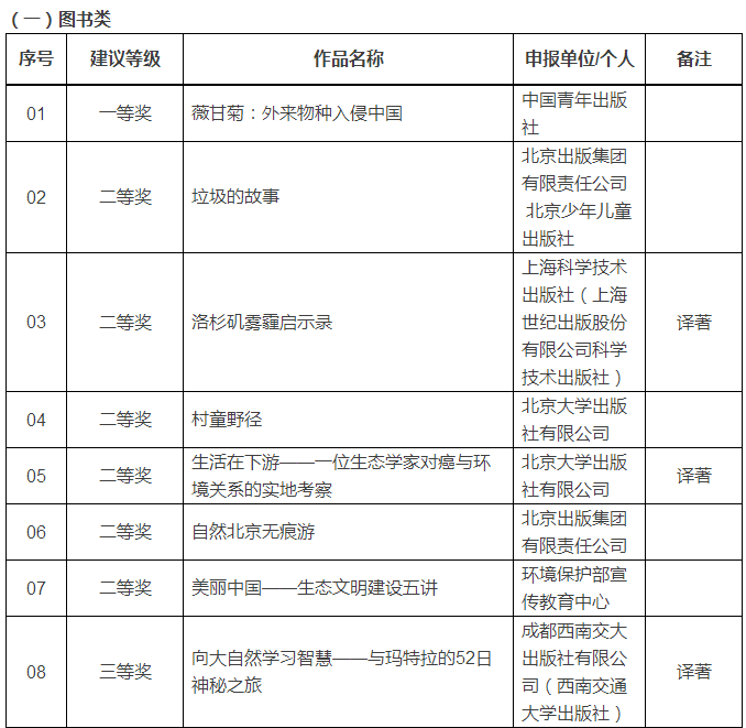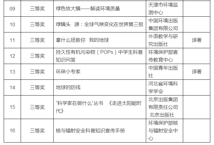 之后,经过专家评选,专家评审会最终推荐了16部图书、5部资料(宣传册、挂图等)和1部音像制品,具体获奖书目如下: